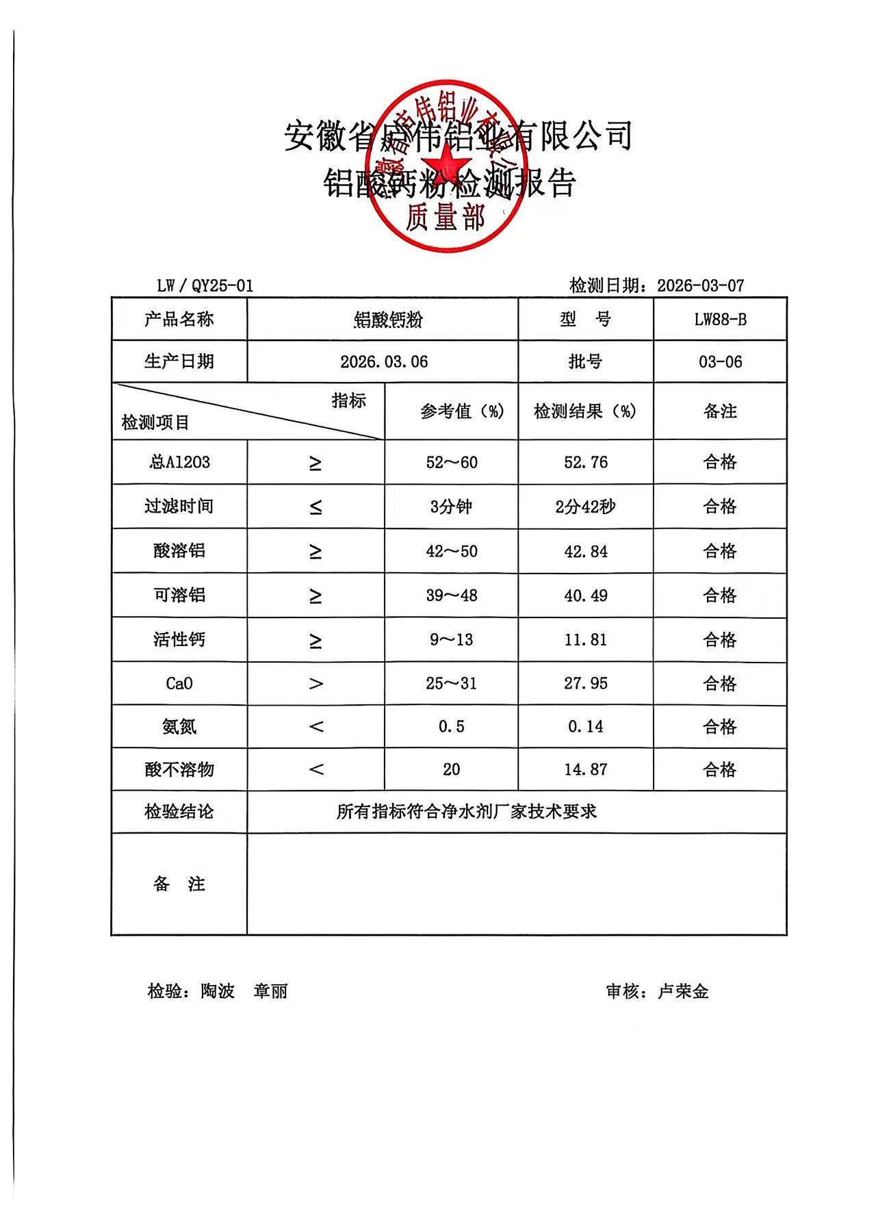 铝酸钙粉(净水剂原材料)主要成份为CaO、AL2O3、Fe2O3,具有较强的活性,采用酸溶一步法生产净水剂可节省大量人力、电力、又能较大的降低成本,并具有工艺设