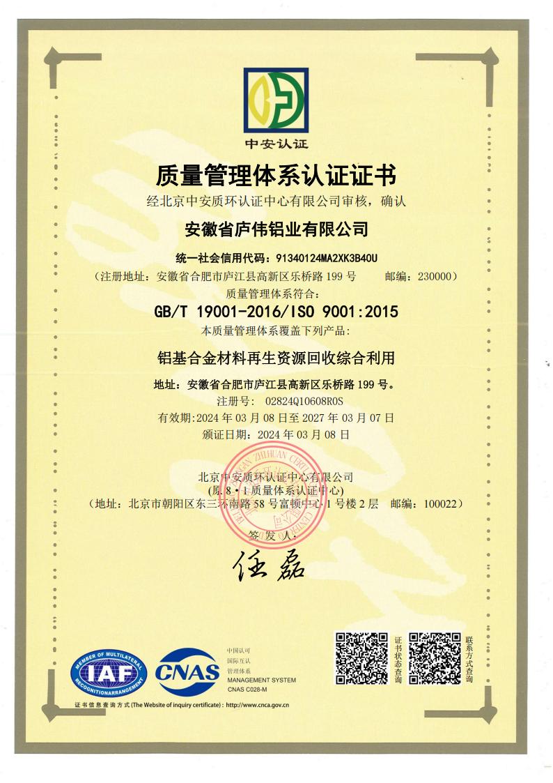 安徽省庐伟铝业有限公司成立于2021年,是一家专注于各种国标牌号铝合金锭制造、铝灰资源化再利用、建筑石膏生产的国家级高新技术企业、安徽省再生资源利用示范企业。公司占地面积5万多平方米,总规划建筑面积7万多平米。